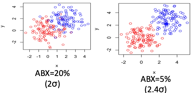 Figure. 2. Illustration of category discriminability for different values of ABX.